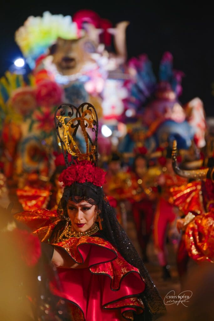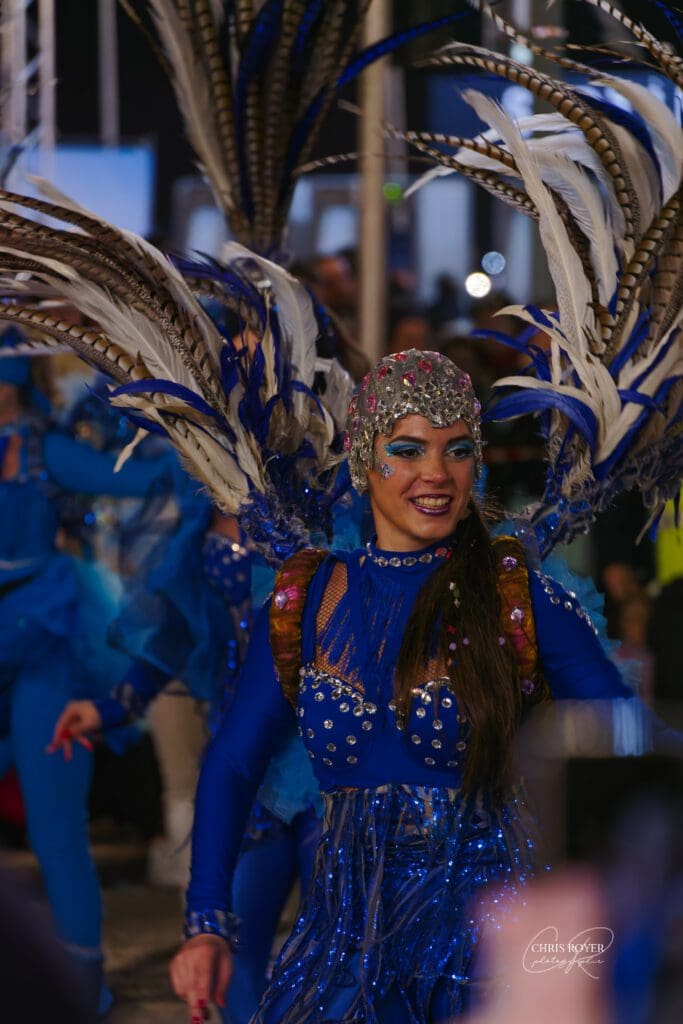 Danseuse de la compagnie La Sal de Torrevieja prise lors du Carnaval de Nice 2026 « Vive la Reine »