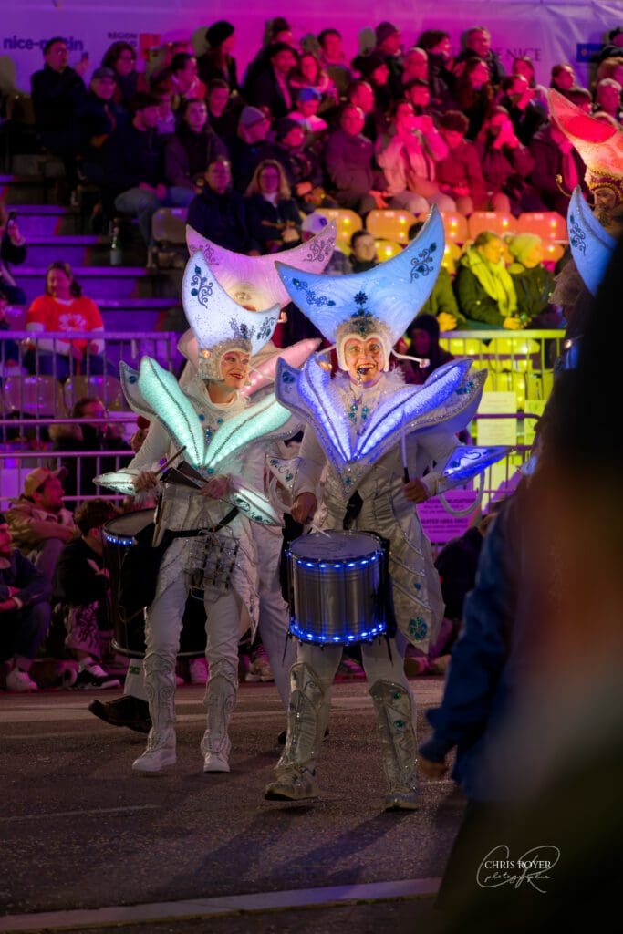 Le Carnaval de Nice se vit en plein jour et parfois de nuit sous des éclairages artificiels !